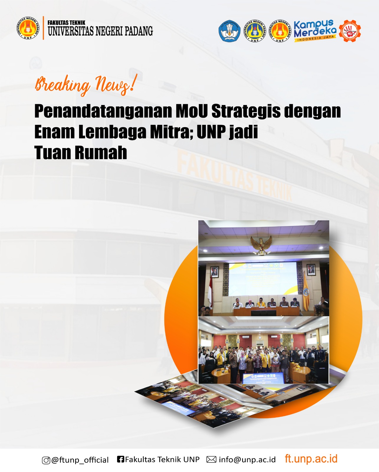 FT UNP_ Ruang Sidang Senat Universitas Negeri Padang (UNP) yang biasanya hening, pada Selasa (10/2) Justru dipadati semangat kolaborasi. Enam lembaga mitra, yakni PT. Bank Muamalat Indonesia, UIN Mahmud Yunus Batusangkar, Universitas Bung Hatta, Universitas Taman Siswa, KONI Sumatera Barat, dan Pemerintah Kabupaten Dharmasraya, hadir untuk menandatangani nota kesepahaman dengan UNP. Acara yang dihadiri seluruh pimpinan...Read More