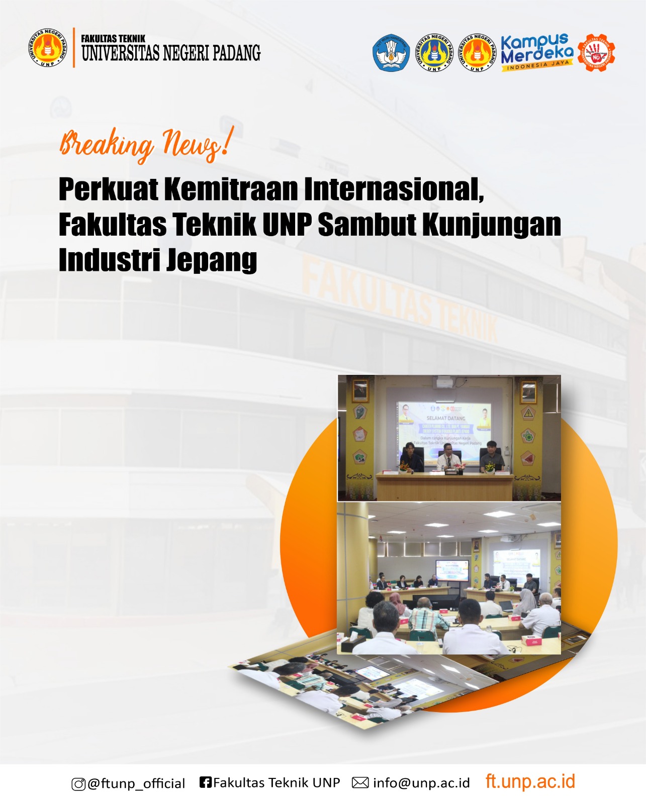 FT UNP_Dalam rangka memperkuat kemitraan internasional sekaligus membuka peluang kerja sama dalam pengembangan kompetensi mahasiswa, Fakultas Teknik Universitas Negeri Padang menerima kunjungan resmi dari PT Yanmar Energy System bersama Career Planning Co., Ltd. dari Jepang pada Senin (16/2/2026). Kegiatan yang berlangsung di Ruang Sidang Dekanat Fakultas Teknik tersebut menjadi forum dialog antara dunia akademik dan...Read More