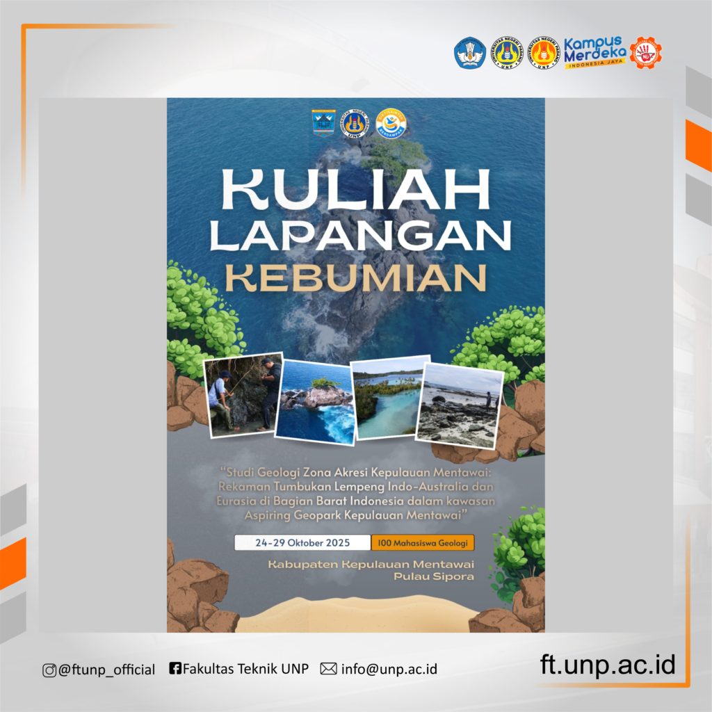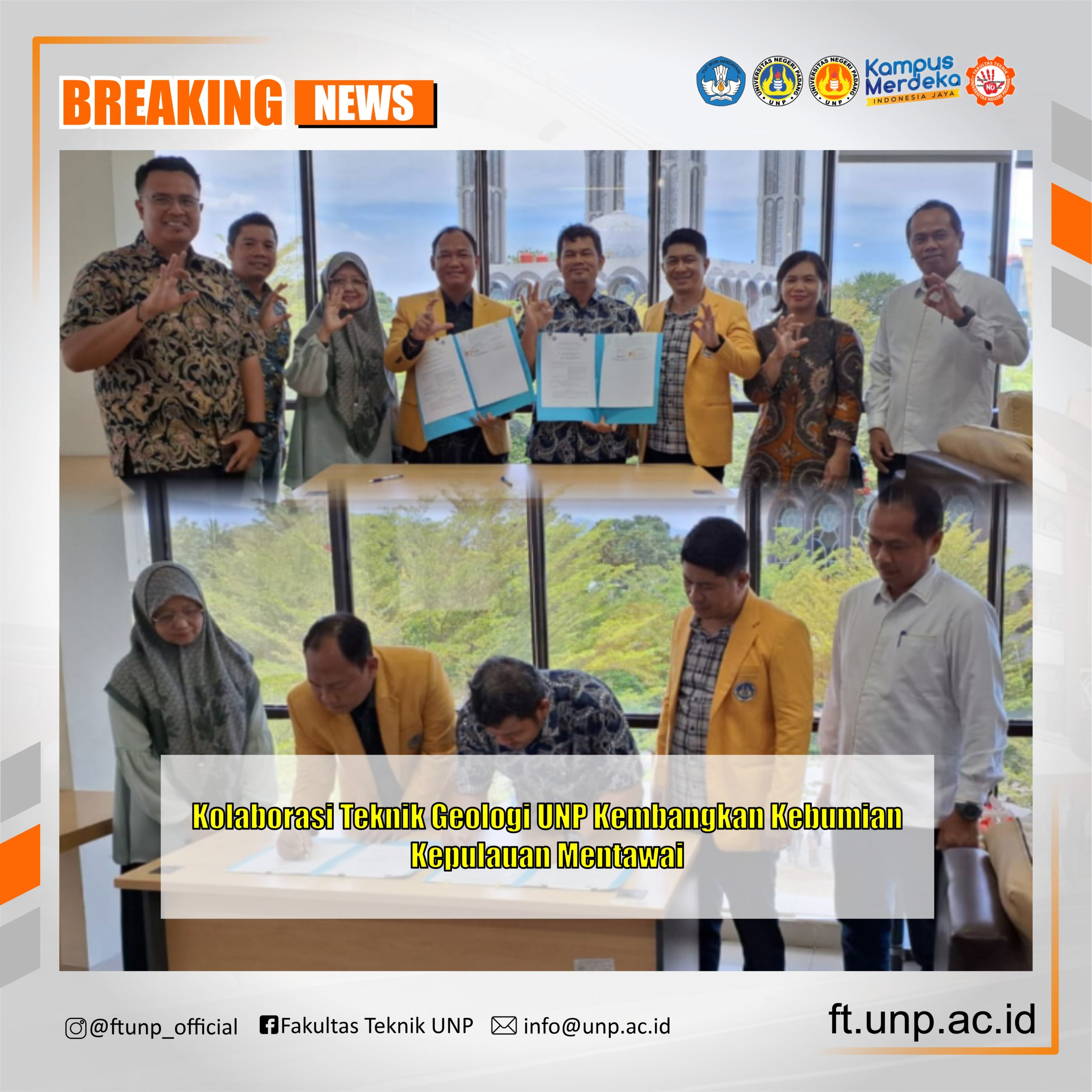 Kegiatan ini merupakan bagian dari penguatan kerjasama antara Fakultas Teknik UNP melalui Program Studi Teknik Geologi yang diketuai oleh Dr. Ir. Rudy Anarta, ST., MT., dengan Pemerintah Kabupaten Kepulauan Mentawai yang disampaikan oleh Bapak Drs. Joni Anwar, MH., selaku perwakilan dari Badan Pengelola Aspiring Geopark Kepulauan Mentawai. Kolaborasi ini menekankan pentingnya sinergi antara dunia akademik dan pemerintah daerah dalam mengembangkan potensi geologi sekaligus mendukung agenda pembangunan berkelanjutan berbasis geowisata.