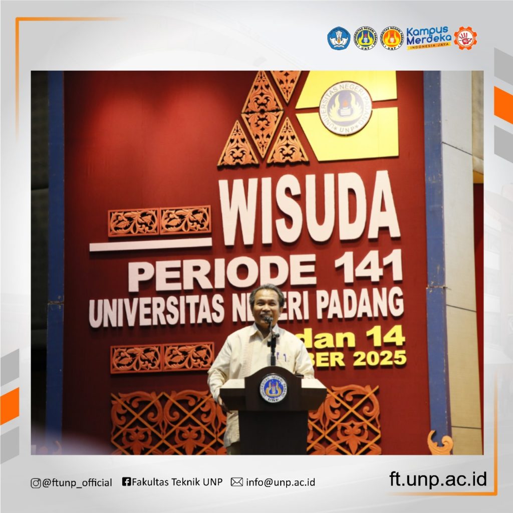 Ketua ILUNI UNP, Drs. Nadirman, MM, dalam sambutannya mengapresiasi sinergi UNP dan ILUNI dalam menyediakan ruang transisi yang konstruktif bagi calon alumni memasuki dunia kerja. Ia juga menyampaikan motivasi kepada para wisudawan dari pengalaman kariernya lebih dari 30 tahun di industri manufaktur dan otomasi.